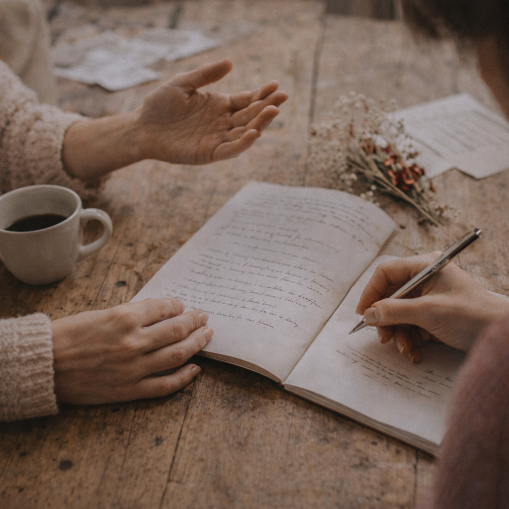 Découvrez mes services d'accompagnement littéraire, mes prochains ateliers d'écriture ou écoutez simplement mon podcast "La Poésie dans son Essence" à votre rythme.